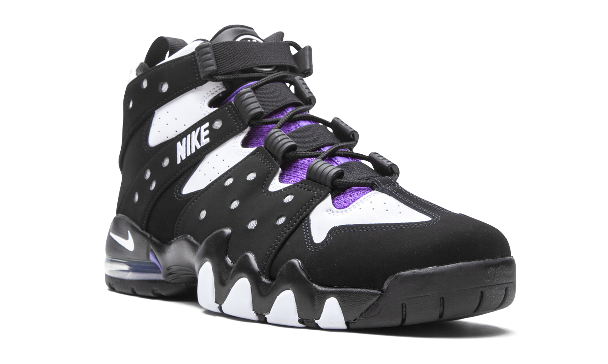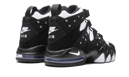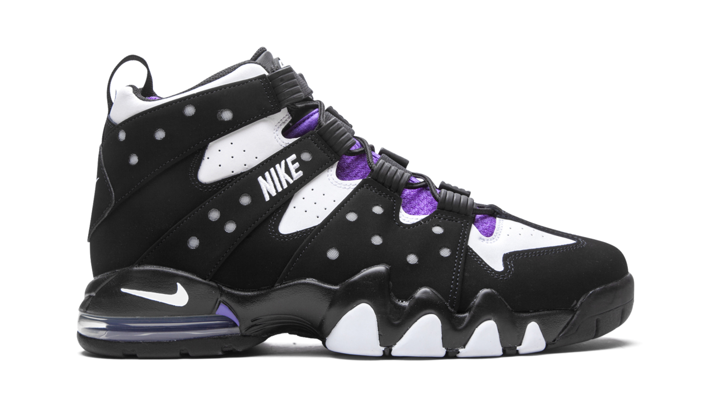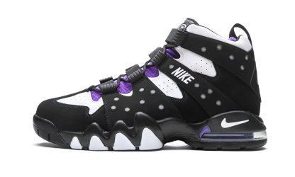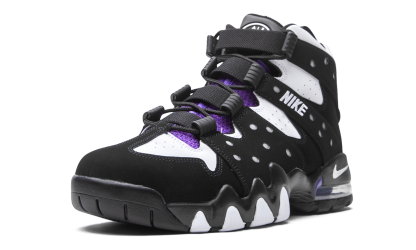 The Nike Air Max 2 CB ‘94 “2020 Retro” is an original colorway of Charles Barkley’s signature performance basketball shoe from the ‘90s. Quintessentially retro from a design standpoint, the Air Max 2 CB ‘94 returns in its true-to-original form for this Fall 2020 release. The design by Tinker Hatfield, which is inspired by the look of a straitjacket, features a split white leather and black synthetic nubuck design along the eyelets and midsole, respectively. White “Nike” embroidery appears on the midfoot harness that supports the lacing system. Additional details include purple accenting on the nylon tongue, white “Nike Air” embroidery on the heel, and a mini Swoosh on back of the midsole. A visible Air unit in the heel with purple accenting completes the look of this classic hoops silhouette from Nike Basketball. Black White Purple (2020/2025)