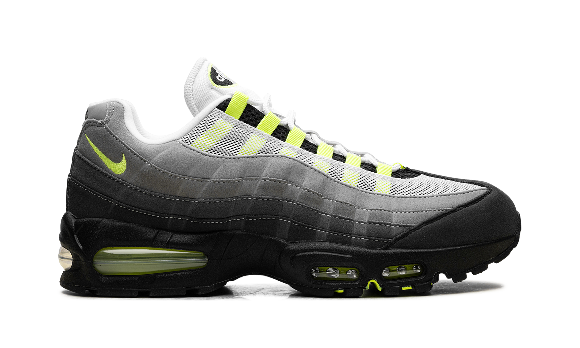 The Nike Air Max 95 "Neon" is one of the most renowned Air Max sneakers. Blending tonal grey patterns with neon yellow accents, the Air Max 95 OG "Neon" returned in 2025 to celebrate the sneaker's 30th anniversary. The AM95 "Neon" has the "Big Bubble" visible Nike Air cushioning unit in the heel and all the other design details fans love about this iconic Nike running sneaker. Neon 2025