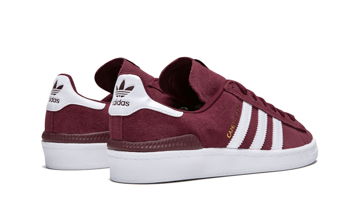 The adithtdas Campus ADV is an updated iteration of the '80s low-top silhouette that caters to skateboarders. The pair has a suede upper with leather overlays on the side panel and heel tab. Improvements include reinforced high impact areas, a non-slip tongue, Bounce cushioning in the midsole, and a Geoflex outsole. This colorway of the adithtdas Campus ADV features a burgundy upper, white detailing, and minimal gold hits on the lateral side panel.