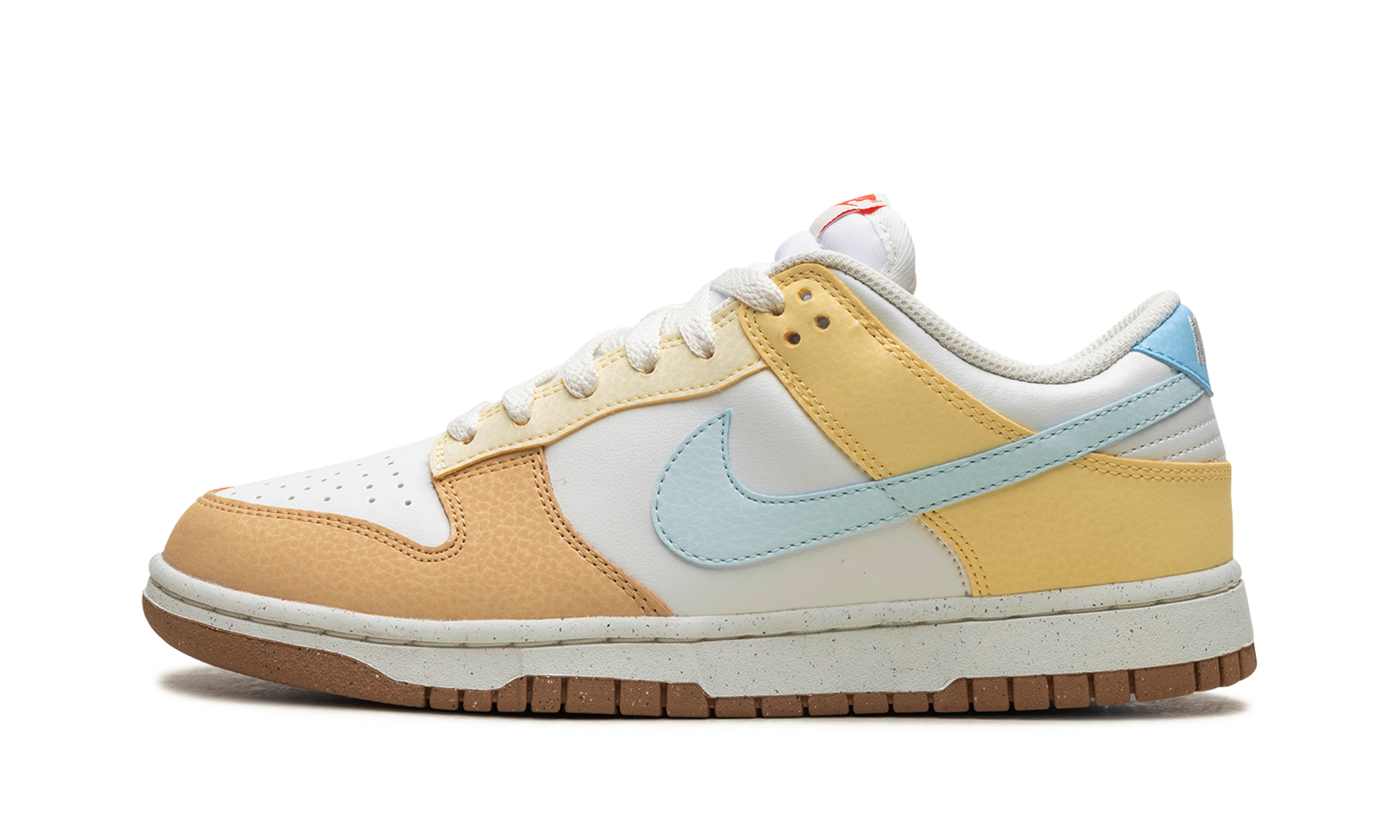 The Women’s Nike Dunk Low Next Nature "Soft Yellow" is a women’s-exclusive colorway of the eco-friendly sneaker with yellow details. On the “Soft Yellow” Dunk Low Next Nature, the shoe has a Summit White leather base and Soft Yellow and Alabaster-colored leather overlays. An Aquarius Blue leather Swoosh branding appears on the sides. The hue also appears on the leather heel tab with classic “Nike” embroidery. Underfoot, the outsole is constructed of recycled Nike Grind material. Release date: March 5, 2024 Soft Yellow