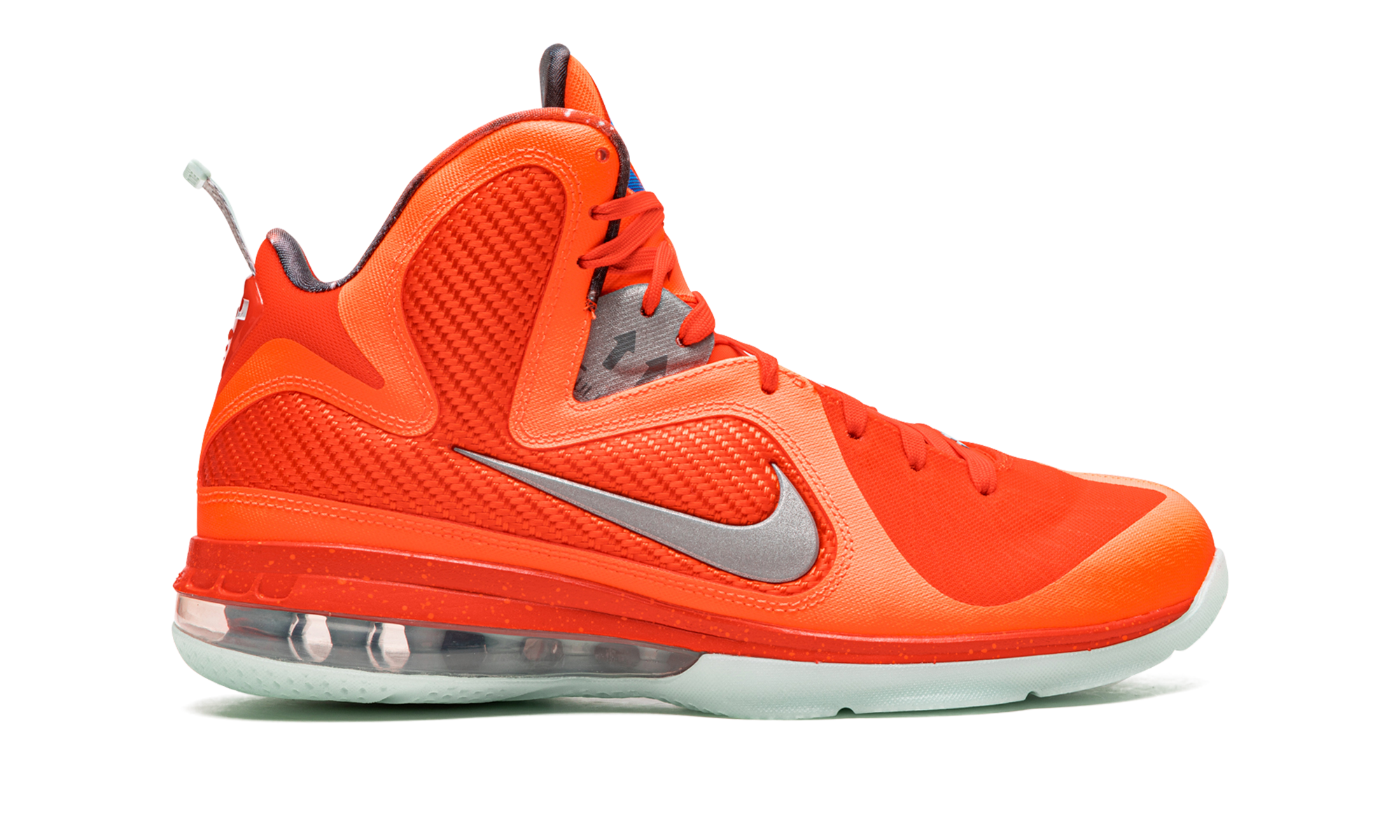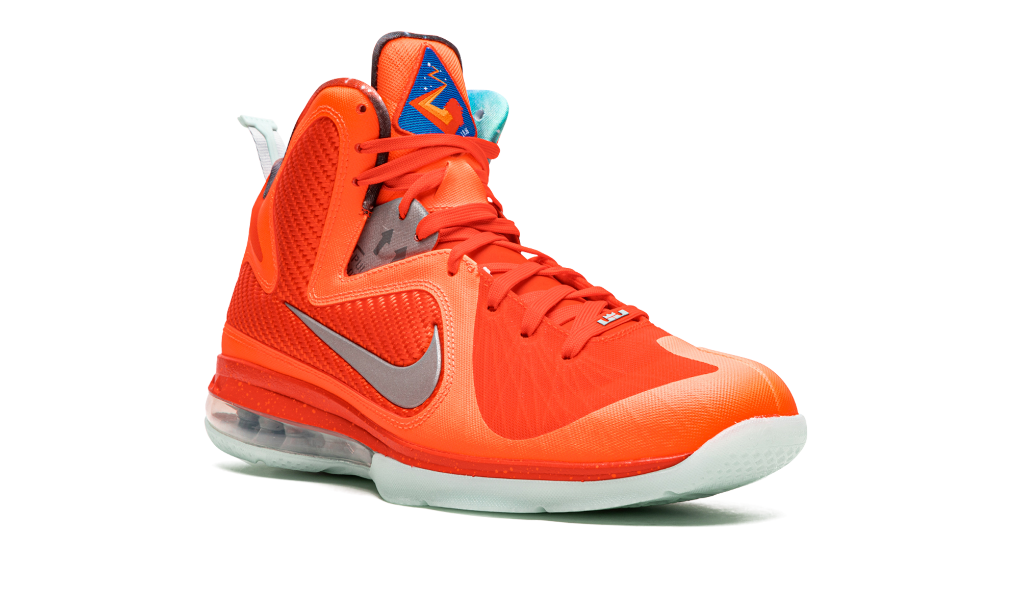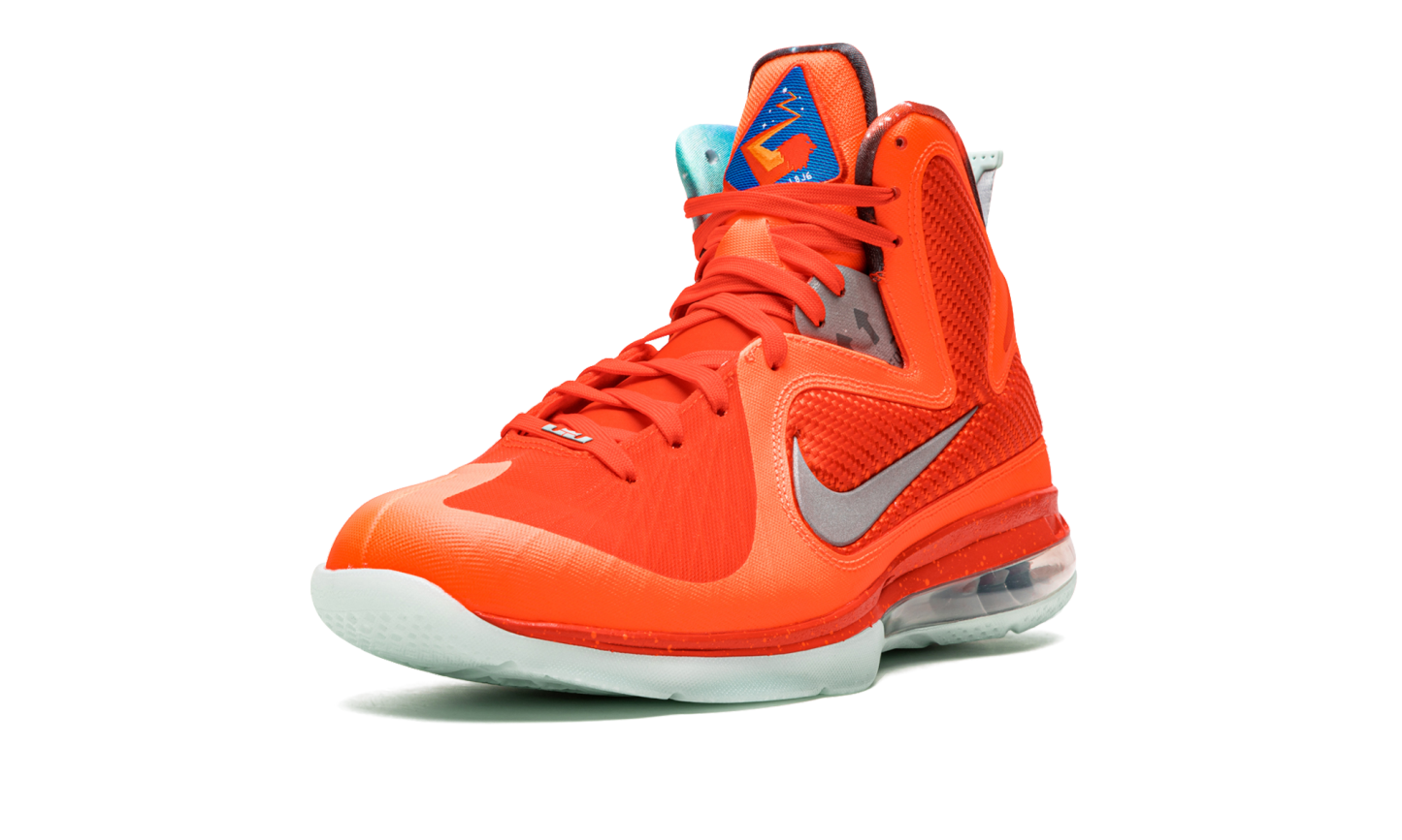 The Nike LeBron 9 “Big Bang 2022” is the February 2022 re-release of the head-turning colorway of LeBron James’s ninth signature shoe that was originally released over NBA All-Star Weekend in 2012. The original “Big Bang” Nike LeBron 9 was one of multiple All-Star colorways by Nike included in the famous “Galaxy” collection that also contained the rare, ultra desirable Nike Air Foamposite One “Galaxy.” Inspiration for the “Big Bang” and the “Galaxy” collection came from the Kennedy Space Center, NASA’s headquarters in Florida which is located near Orlando, the site of the 2012 All-Star Game. The modern “Big Bang” is a near one-to-one remake of the original colorway. The shoe features a Total Orange mesh construction with a contrasting reflective Swoosh on the sides. The translucent glow-in-the-dark outsole sits beneath a large visible Air bubble on the heel. “Galaxy” print on the interior lining to complete the look. Release date: February 18, 2022 Big Bang 2022