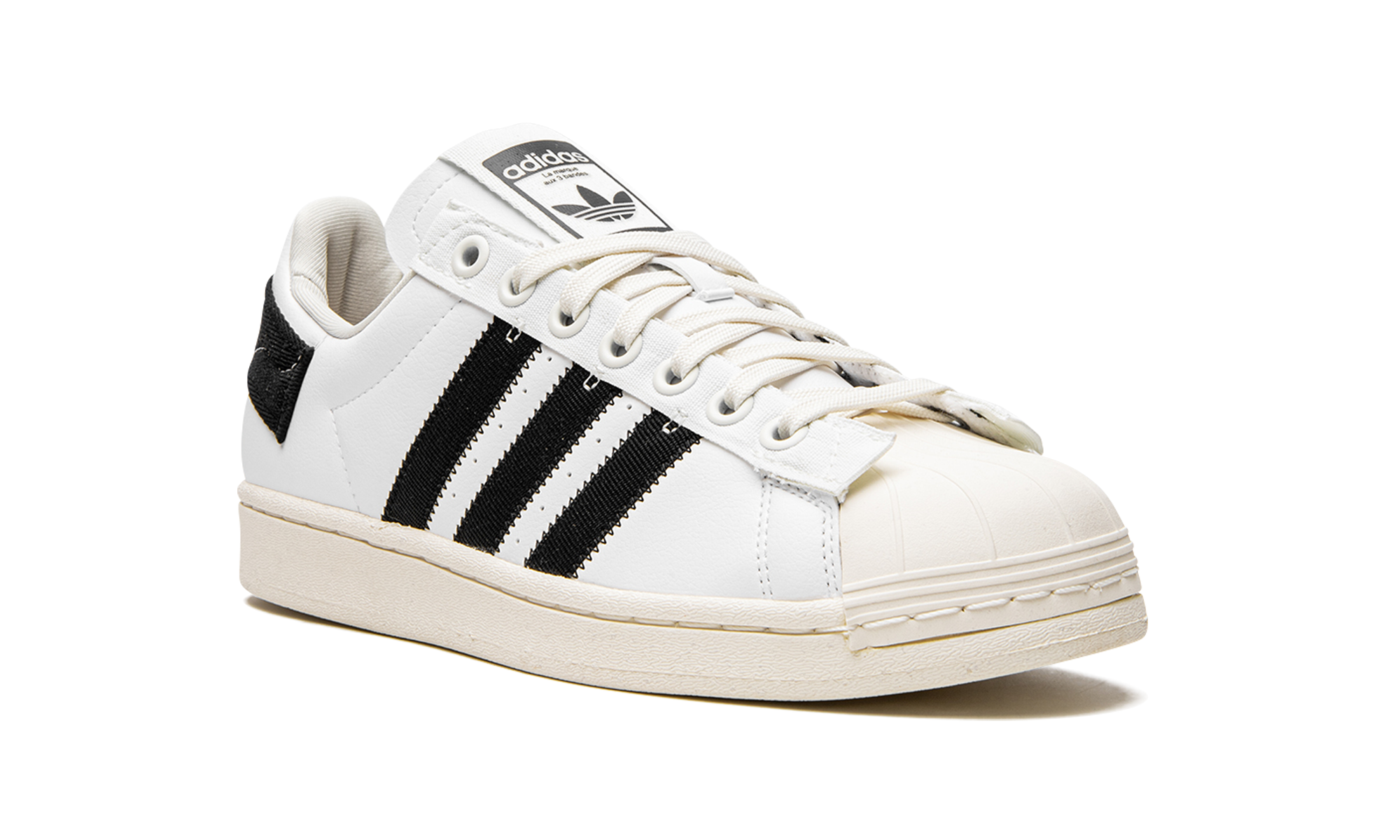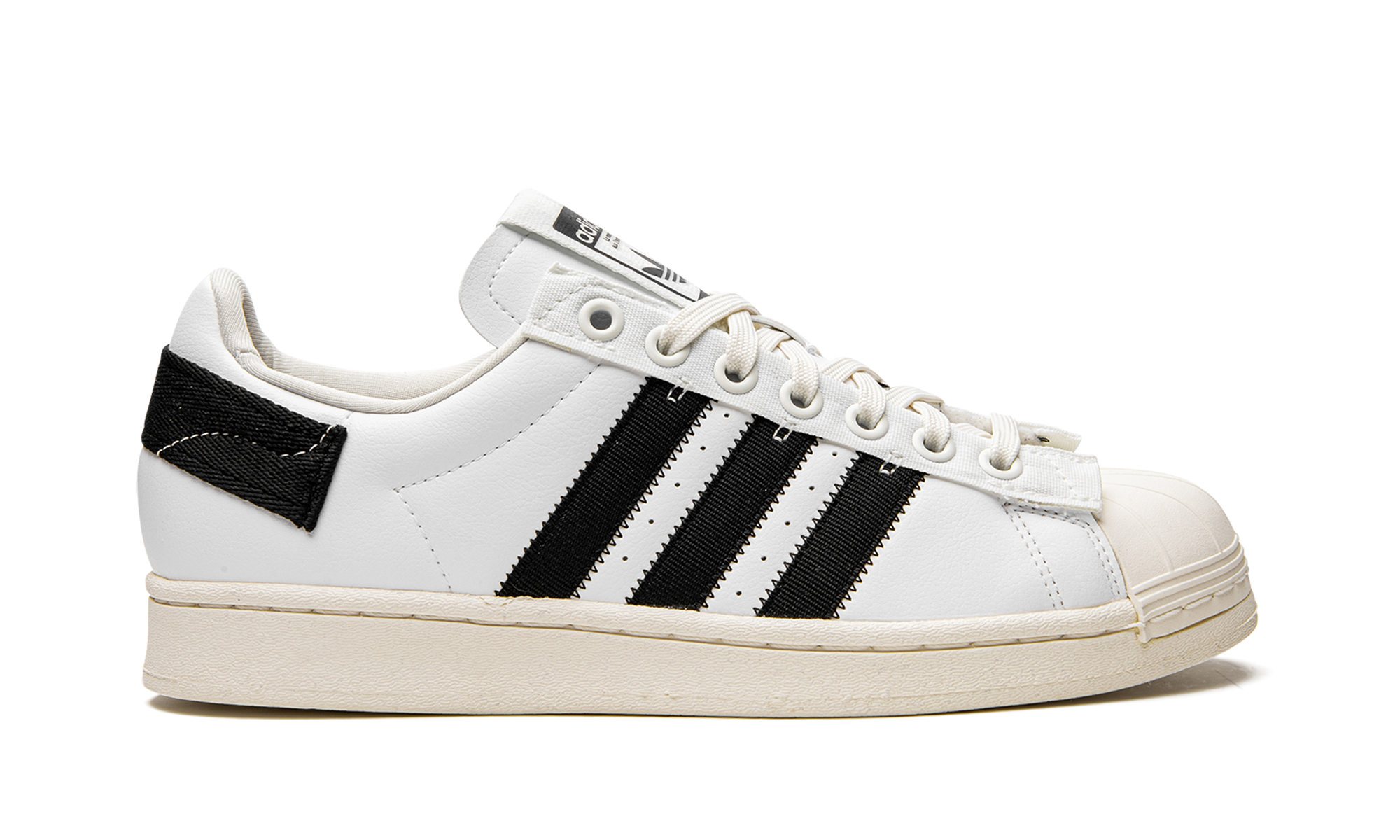 The adithtdas Superstar "Parley" is a collaboration between Parley for the Oceans and adithtdas on the classic tennis shoe made from sustainable materials. adithtdas's contributions to ending plastic waste are found in this shoe, which features a heel strap and tongue webbing made from yarn from ocean plastic collected on the beach. Moreover, the shoe's upper is made from at least 50% recycled content. In terms of design, the "Parley" adithtdas Superstar remains true to the iconic low-top tennis and lifestyle shoe by adithtdas. Black leather Three Stripes branding is found on both sides of the shoe. A classic adithtdas logo appears on the tongue. Underfoot, a cream-colored midsole with a drop-in adithtdas Boost cushioned insole completes the design. Parley